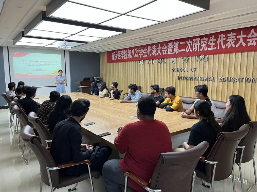 会上,留学生科教师首先介绍了二十大报告和两会政府报告重点内容,并着重解析了与国际学生有关的文化交流、健康卫生、高等教育国际化、人才交流与合作、科技创新、人才培养、人类命运共同体等方面内容。学习后,参会国际学生就相关话题展开热议,分享了自己真实看法。