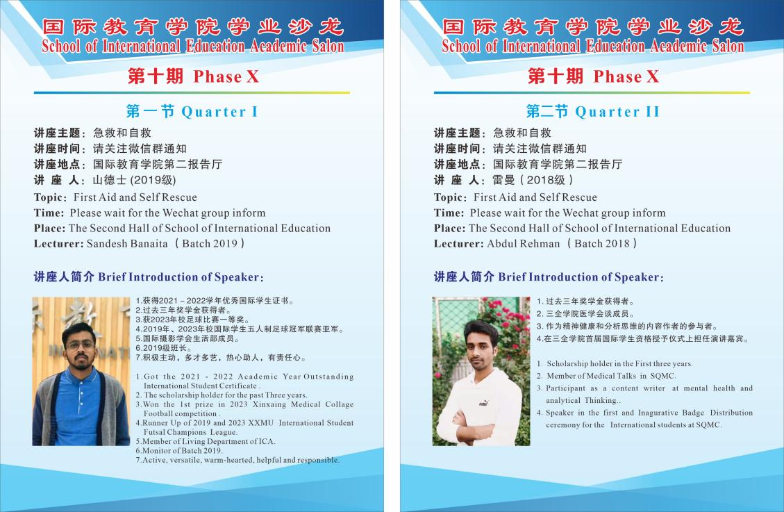 为进一步增强国际学生的急救自救意识及能力,弘扬“人人学急救,急救为人人”的新文明新风尚,我院于9月27日上午组织国际学生开展急救自救知识分享交流活动。本次活动的两位主讲人分别来自2018级和2019级,在校国际学生参与了此次活动。