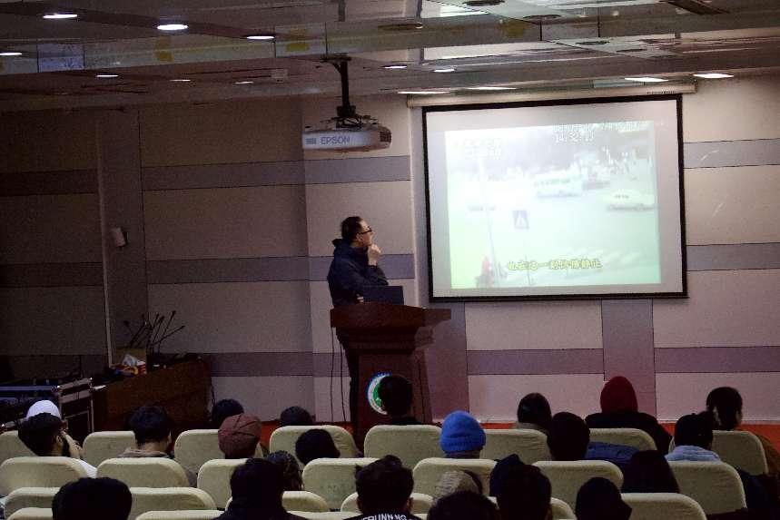 首先,辅导员张老师带领国际学生一起观看了有关汶川大地震的视频,并结合视频内容为学生们讲授了与地震相关的基本知识。之后,张老师结合自身经历科普了常见的地震前兆现象,如何在地震中选取安全的位置躲藏,以及不幸被地震掩埋后如何自救,讲解内容详略得当,通俗易懂,赢得学生们阵阵掌声。