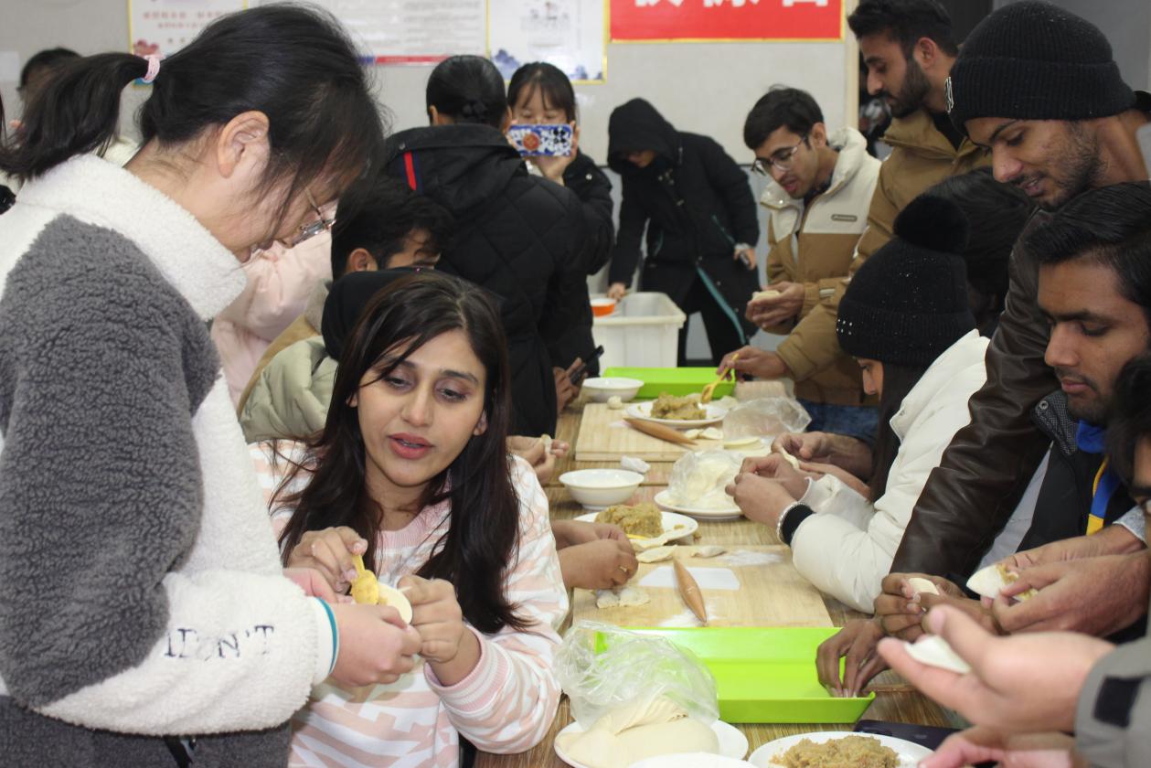 活动期间,国际教育学院院长袁磊向留学生们讲解了“十月一,冬至到,家家户户吃水饺”的习俗同“医圣”张仲景冬至舍药之间的渊源。听完讲解,中国学生和餐厅工作人员又手把手地传授留学生包饺子的要领。