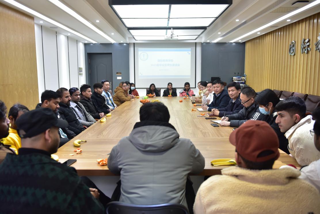 2024年1月12日上午,我院召开2023届国际学生毕业生座谈会。学院领导班子、教务科老师、留学生科辅导员及20余名毕业生代表参加座谈会。