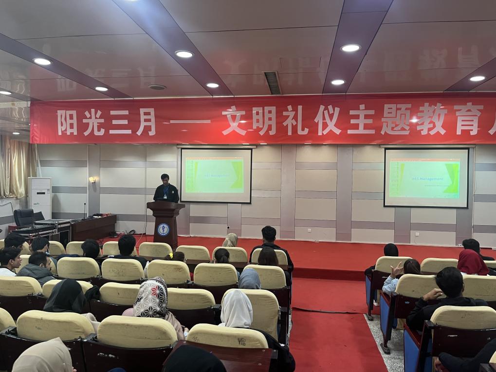 为提升我院整体形象、提高标准化管理水平,促进学院高质量发展,增强国际学生综合素养,打造“SQS”留学新医品牌,2024年3月14日,我院于第二报告厅举行“e6S”精益管理讲座,主讲人为来自2021级的MUHAMMAD HAMMAD UL SAEED(奥萨德),留学生科辅导员及全体在校国际学生参加此次活动。