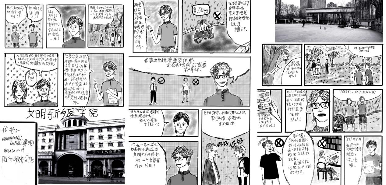 文明礼仪作品大赛激发了国际学生们的创造力和想象力。大赛通知一经发布,共收到学生漫画、短视频作品六十余份。学生们用手中的画笔、相机和文字,创作出了一幅幅生动形象的文明礼仪作品,不仅展示了自己对文明礼仪的独特理解,也为校园文化建设增添了浓厚的色彩。