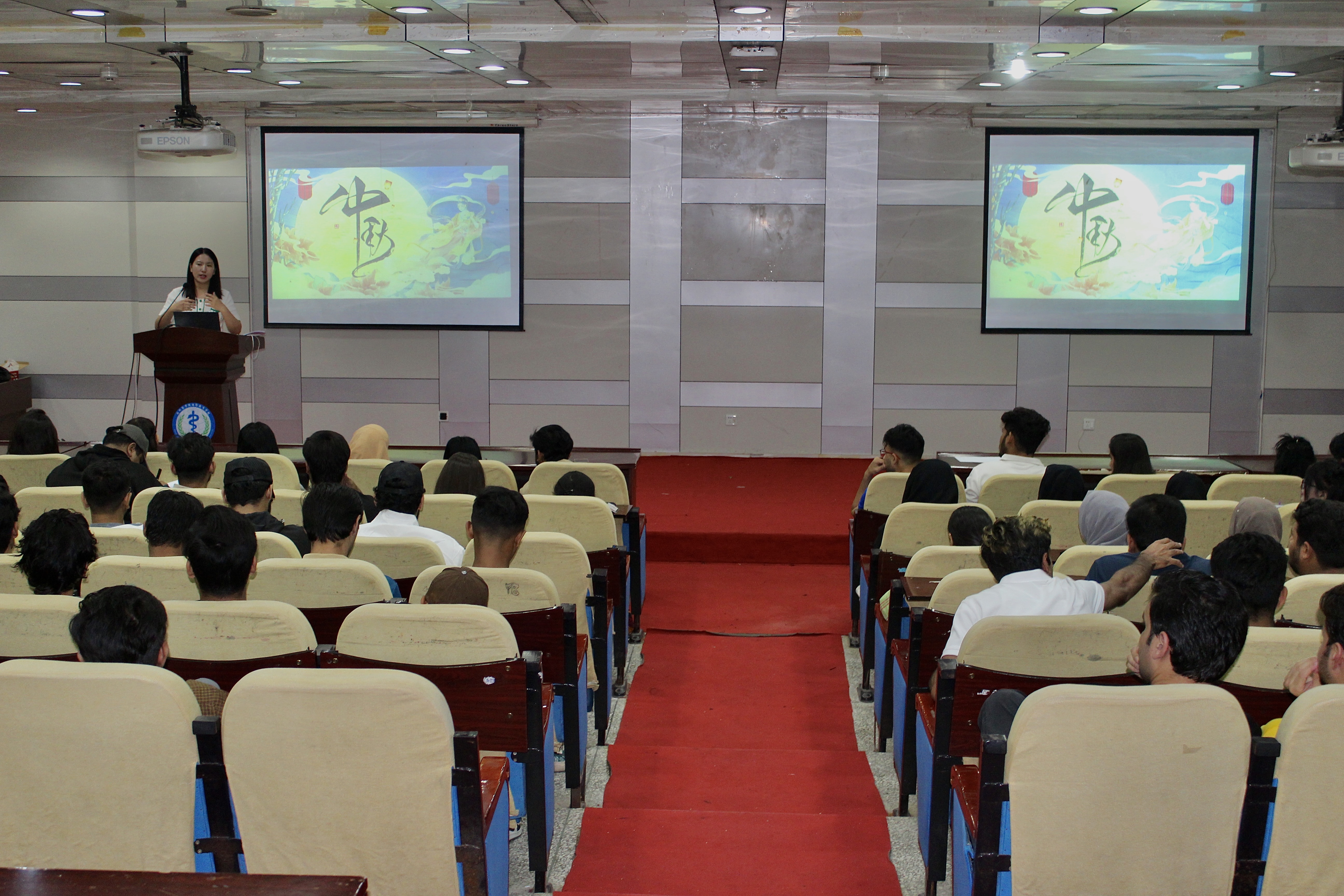活动伊始,一场别开生面的中秋文化知识讲堂吸引了国际学生的目光。留学生科老师以月为媒,通过古人借月咏怀的诗歌,娓娓道来中秋节的悠久历史、动人传说以及丰富多彩的节日习俗,让国际学生仿佛穿越时空,亲身感受到了这份古老而温馨的节日情怀。