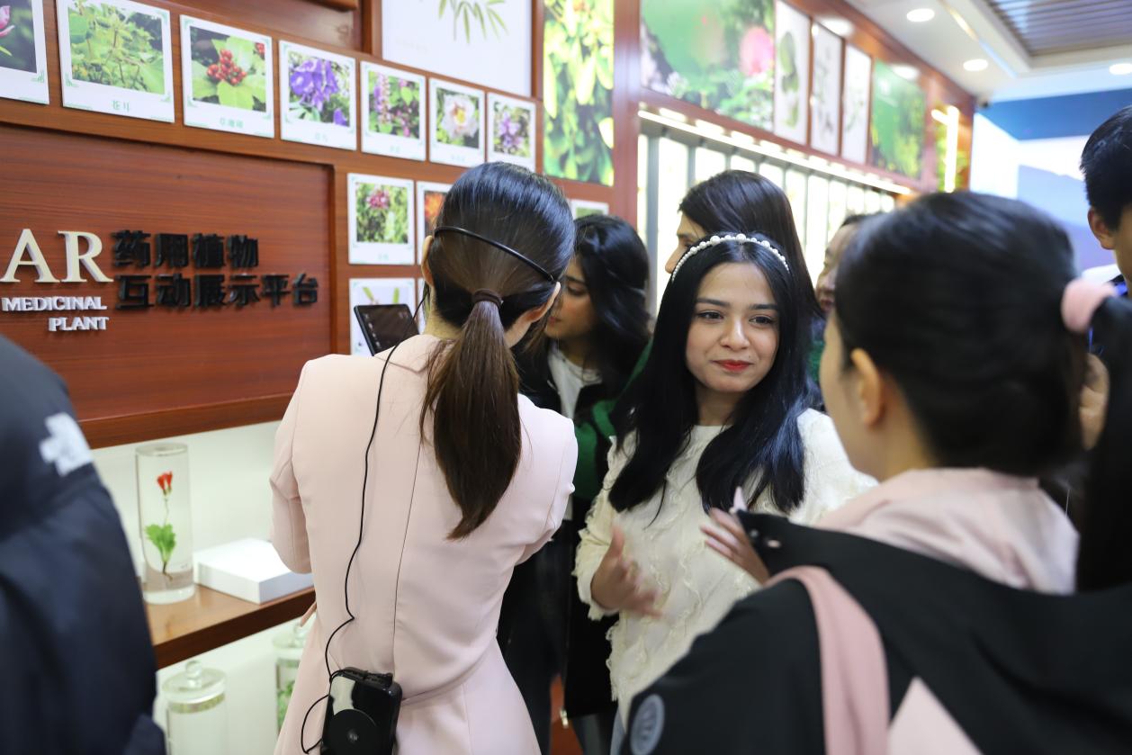 活动当天,我校国际学生首先参观了信阳职业技术学院的中药博物馆。在中药科技馆的文化长廊,药学院老师向留学生们详细介绍了中医药在中华文明中的悠久历史和重要地位,使他们在聆听中深刻感受到中医药文化的源远流长和博大精深。随后,学生们在药学院老师的带领下,逐一参观了中药科技馆的各个展厅,包括文化厅、浸料腊叶厅、大别山特色厅、原生药厅、饮片及其他标本厅以及传统中药制药、现代中药制药厅。通过先进的科技设施和生动的展示内容,学生们在互动体验中深入了解了中医药学的独特魅力和科技力量,对中医药文化有了更加直观和深刻的认识。