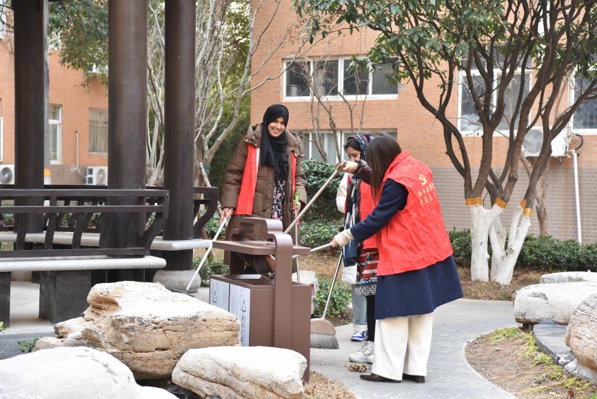 在第62个“学雷锋纪念日”之际,为弘扬“奉献友爱互助进步”的志愿服务精神,共筑美丽校园,3月7日下午,我院组织开展“学雷锋·文明实践我行动”主题志愿服务活动,以劳动实践深化教职工党建和国际学生思政教育,以中外文化交融赋能新时代校园文明风尚。