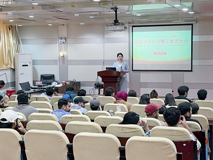 4月25日上午,我院召开国际学生安全警示教育大会,副院长吴玉东、留学生科辅导员及全体国际学生参加会议,会议由留学生科姚婷主持。