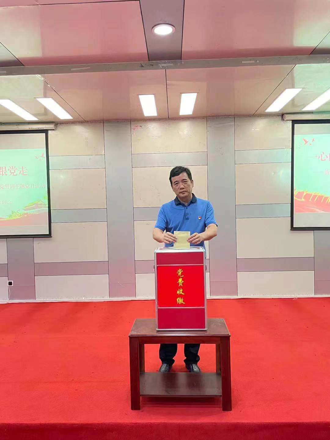 全体党员现场交纳了党费。最后,本次主题党日活动全体党员合唱的国歌声中落下帷幕。