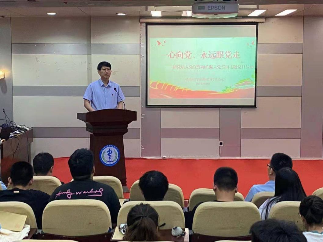 学院党委书记王正晓以《学史力行——做信仰坚定的合格共产党员》为题给全体党员上了一场生动的党课,他号召同学们要加强理论学习,坚定理想信念;遵守党的章程,严守党的纪律;发挥模范带头作用,为党旗增辉添彩;学史力行,走好新医新征程。他要求全体党员要锐意进取,奋发有为,以昂扬姿态奋力谱写特色鲜明的高水平医科大学建设绚丽篇章。