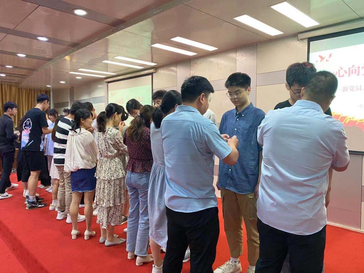 本次主题党日活动在雄壮的《国际歌》中拉开序幕。随后,面对鲜红的党旗,全体新党员进行入党宣誓,与会老党员一起重温入党誓词。