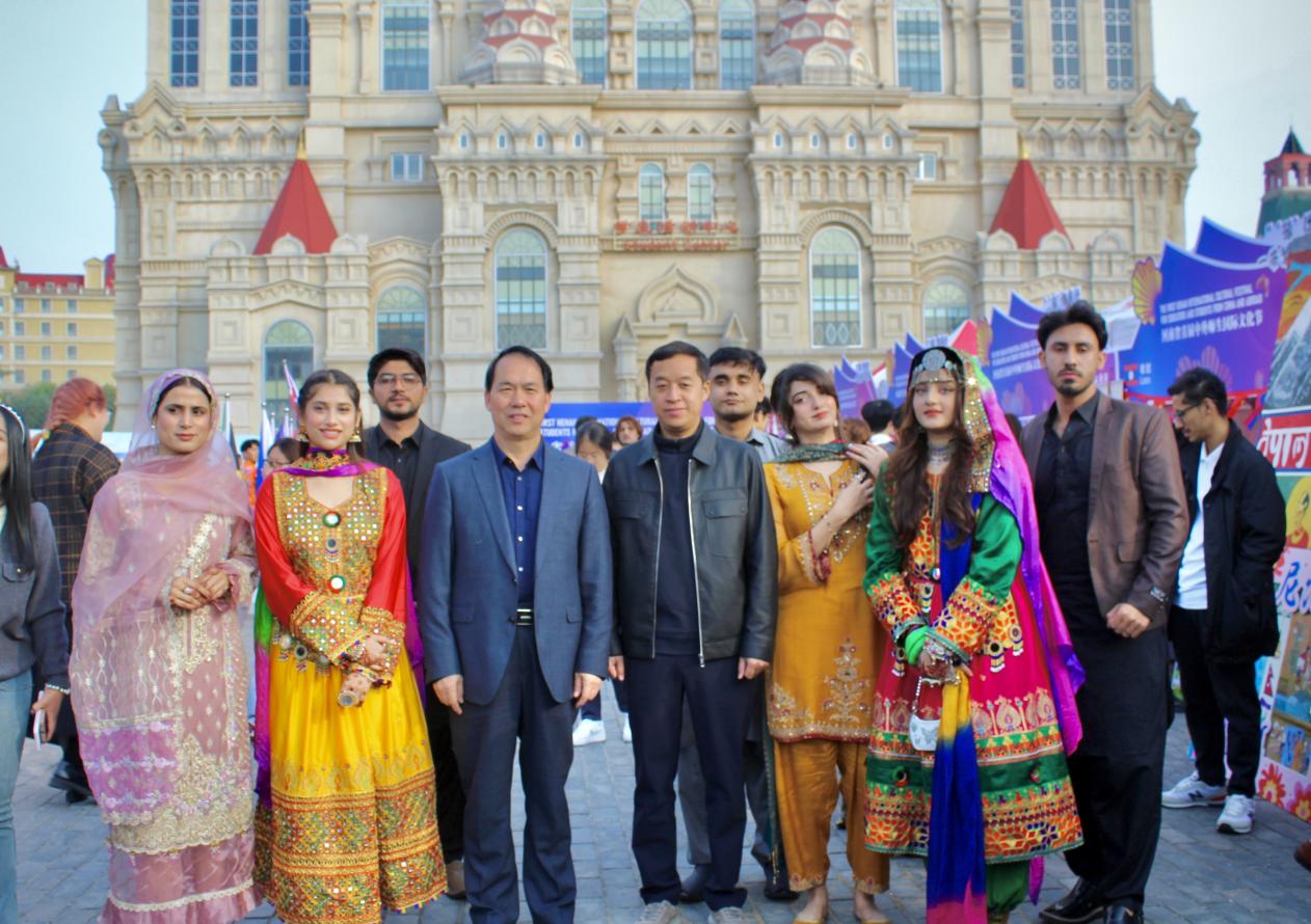 文艺汇演上,由我校选送的舞蹈《舞韵缤纷》将文化节汇演的现场气氛推向高潮。学生们身着华丽的民族服饰,青春洋溢的舞姿将巴基斯坦的热情奔放、尼泊尔的神秘优雅、印度的绚烂多彩以及非洲的自然洒脱展现得淋漓尽致。