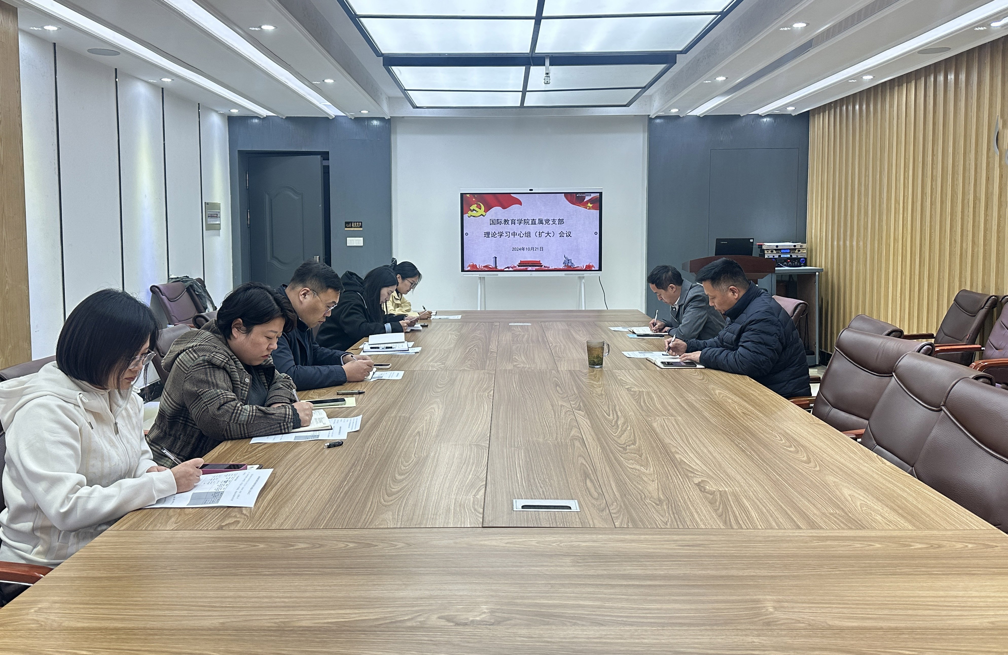 10月21日下午,学院直属党支部组织召开了2024年第12次理论学习中心组(扩大)会议,学院直属党支部书记袁磊主持会议,理论学习中心组全体成员和科级干部参加会议。