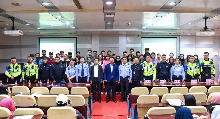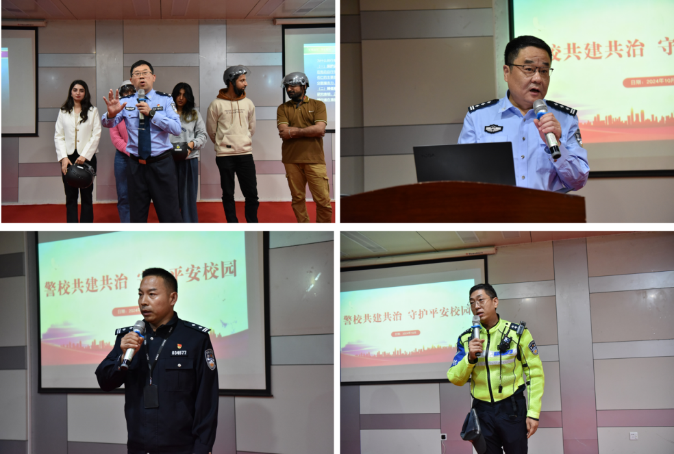 为进一步提升我校国际学生的安全意识和法律素养,我院联合警方力量,于10月11日晚在第二报告厅举办了一场别开生面的安全讲座,共同致力于构建更安全、更和谐的学习环境。新乡市公安局治安支队出入境管理大队、新乡市公安局红旗分局洪门派出所社区大队、新乡市公安局交通管理支队宣传教育大队、新乡市公安局交通管理支队六大队、新乡市公安局交通管理支队铁骑大队共十余位警官莅临讲座现场,我院院长袁磊出席活动,副院长吴玉东以“多角度强化安全与法律教育的重要性”为题致开场辞。此次讲座吸引了全体国际学生的积极参与。