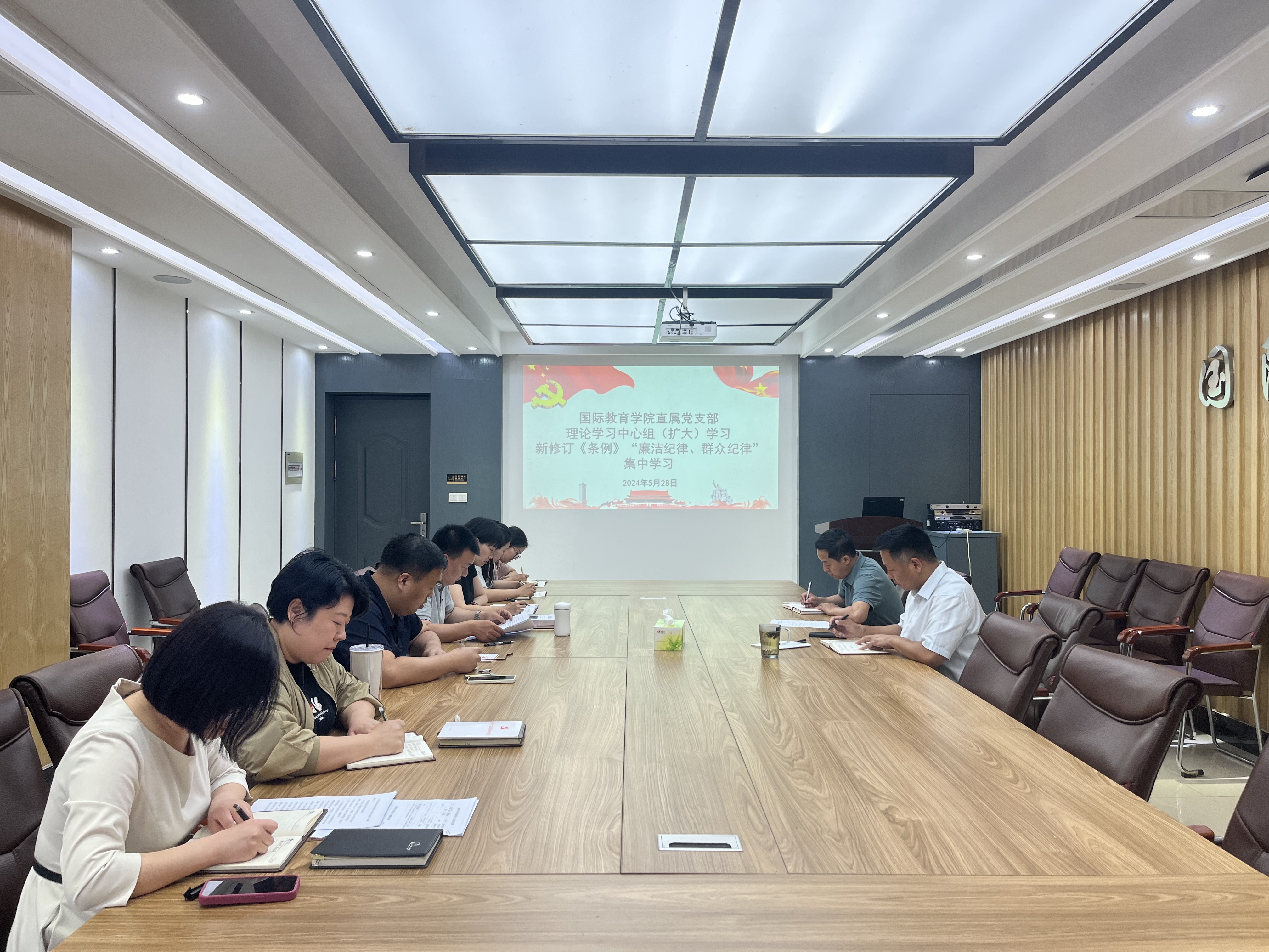 5月28日下午,学院直属党支部在会议室召开理论学习中心组(扩大)学习会,学习《中国共产党纪律处分条例》之“廉洁纪律、群众纪律”有关内容。学院直属党支部理论学习中心组全体成员和科级干部参加学习。会议由直属党支部书记袁磊主持。