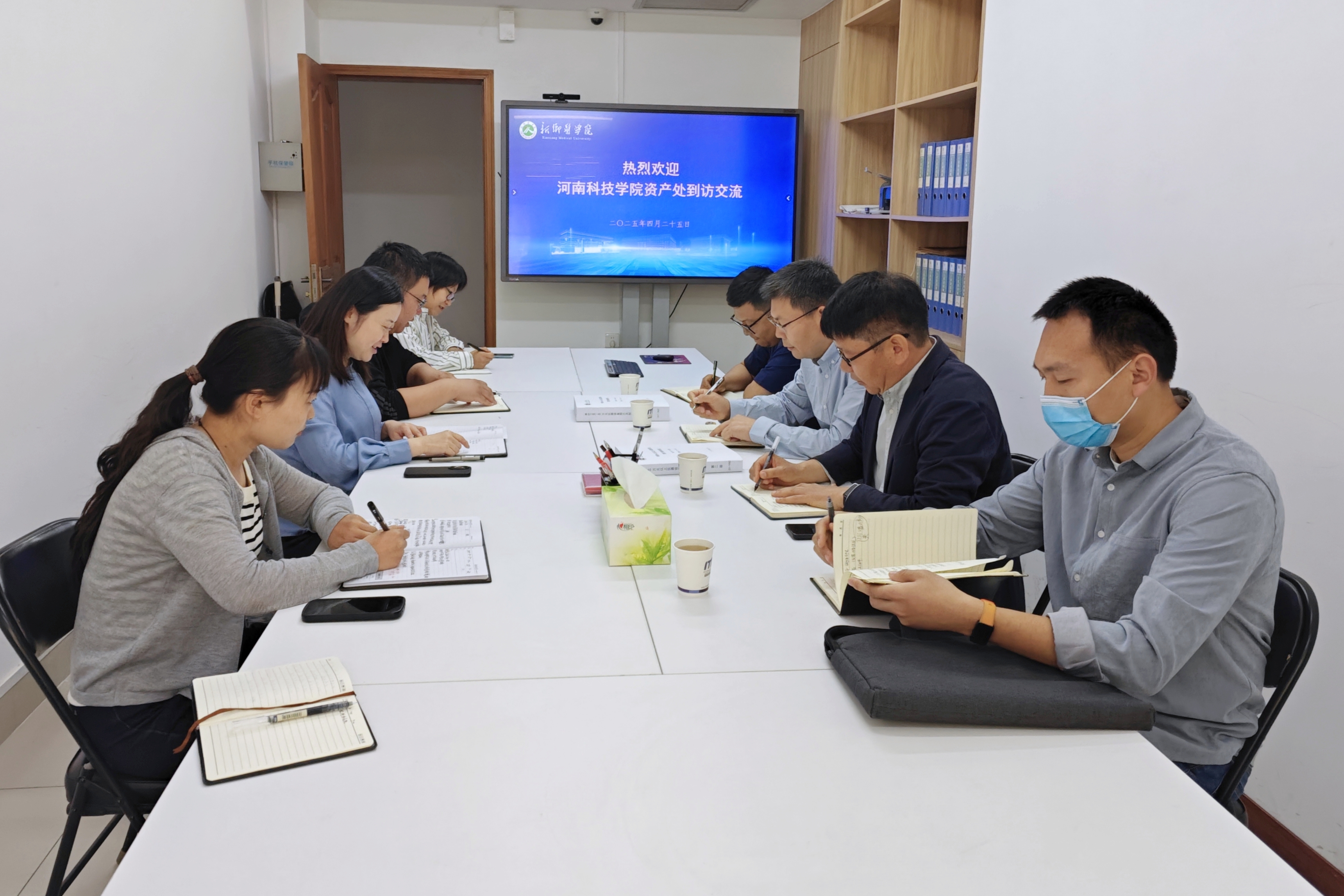 4月25日上午,河南科技学院资产处处长马新岭、副处长刘弘等一行4人赴我校进行了调研交流活动。我校国有资产管理处组织接洽,处长王丹及资产与设备管理科人员参加了本次活动。