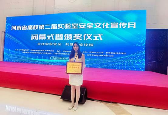 2023年3月13日,河南省高校第二届实验室安全文化宣传月闭幕式暨颁奖仪式落幕,我校荣获优秀组织奖。