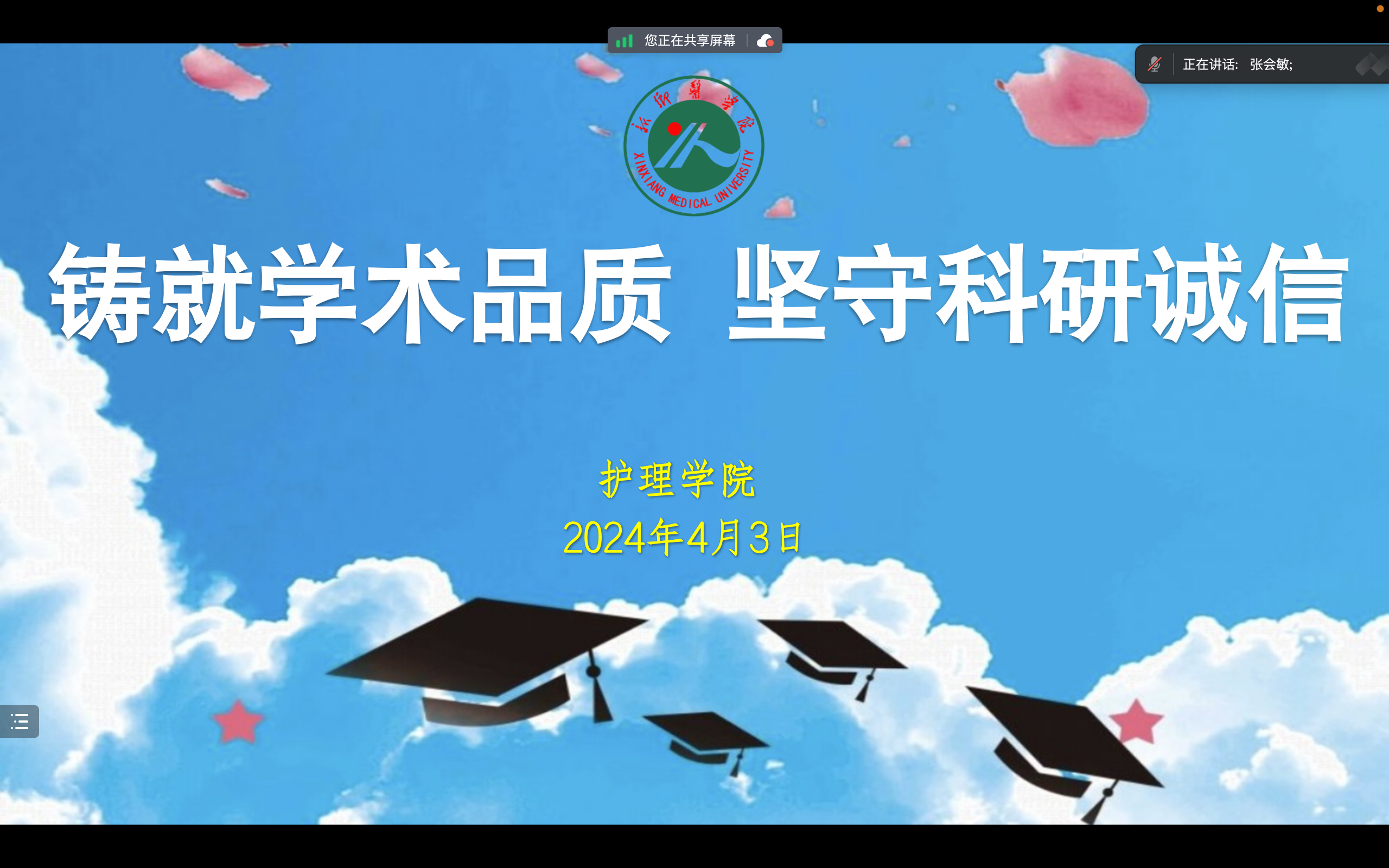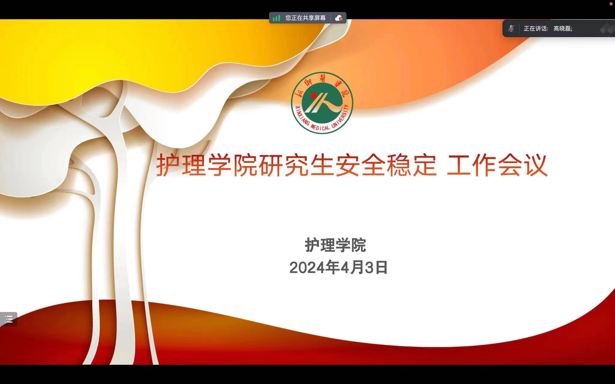 4月3日,护理学院召开研究生假期安全线上会议,副院长王丽娜、研究生培养与学位建设办公室主任张会敏、兼职辅导员高晓磊及全体研究生参加。