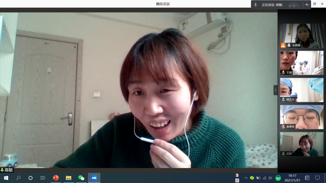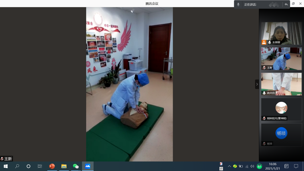 实习检查结束后,实习生李娅和袁春贺两名同学参加线上技能考核比赛。他们将分别完成静脉输液和院外心肺复苏两项操作,比赛过程中,两名同学有条不紊,动作娴熟敏捷。技能考核评委高敏老师进行细致入微的点评,指出同学们在汇报过程中出现的错误,并且提醒大家护理工作细心和严谨的重要性,告诫同学们在以后的护理工作中切勿眼高手低,一定脚踏实地、戒骄戒躁。