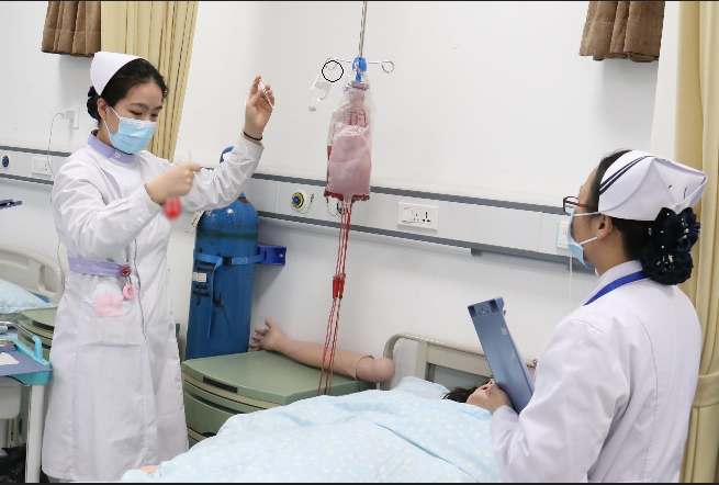 本次考核方式为多站式考核,分为4个站点,分别是综合素质考站、密闭式静脉输液考站、翻身扣背考站、心肺复苏术考站。考核以案例为主线,力求全面客观地评价学生的临床思维能力、人文关怀精神及临场应变能力,检验学生临床基本操作技能的规范化程度。考生们以扎实的理论知识和熟练的操作技能,圆满完成了各站点考核任务。考核结束后,罗艳艳院长主持召开了毕业技能考核反馈会,总结了毕业技能考核中存在的相关问题,为改进护理技术技能教学、促进护理学专业发展奠定了基础。