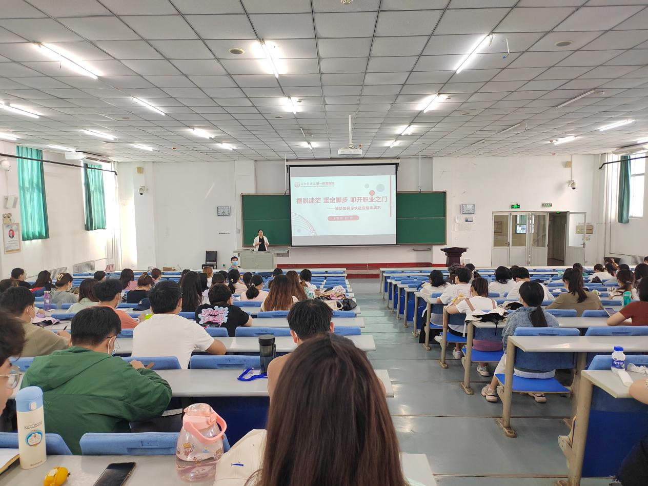 23日下午,第一附属医院护理部副主任赵佳就护理学生如何尽快适应临床实习与同学们展开深入探讨。赵主任从兵精粮足、充分准备,不骄不躁、高效学习,厚积薄发、成就自我等三个方面鼓励同学们提前做好实习准备,通过做到勤动手、善思考、虚心学,打好临床护理工作的基石。同时,要不忘初心,永葆一颗善良之心,成为守护病人的优秀士兵。