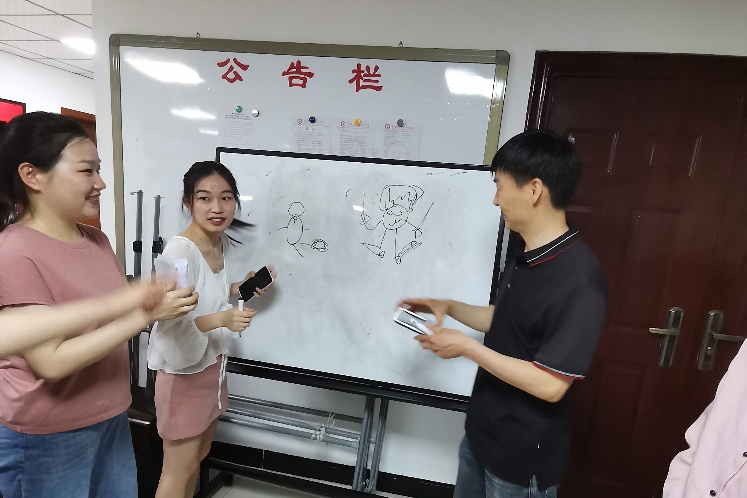 活动第三项,趣味系列游戏。设有“心有灵犀”、“你画我猜”、“手舞足蹈”等项目。比赛中,大家团结协作,配合默契,充分展示了师生的心灵契合、宽广知识、机智的应对和绘画功底。大家欢声笑语,互相加油,现场氛围欢快热烈。
