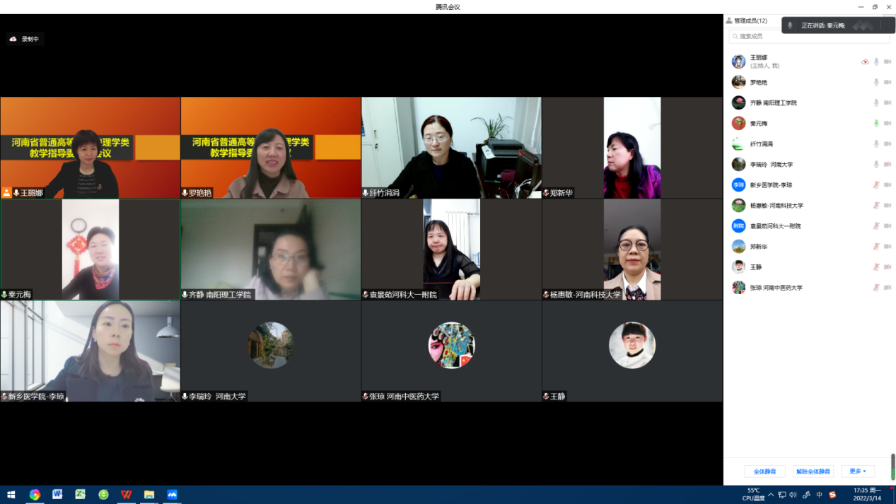 3月14日下午,作为连任的第二届主任委员单位,我校护理学院主持召开新一届省普通高校护理学类教指委第一次工作会议。由于疫情影响,会议在线上进行。省高校护理学类教指委全体委员按时参加了会议。