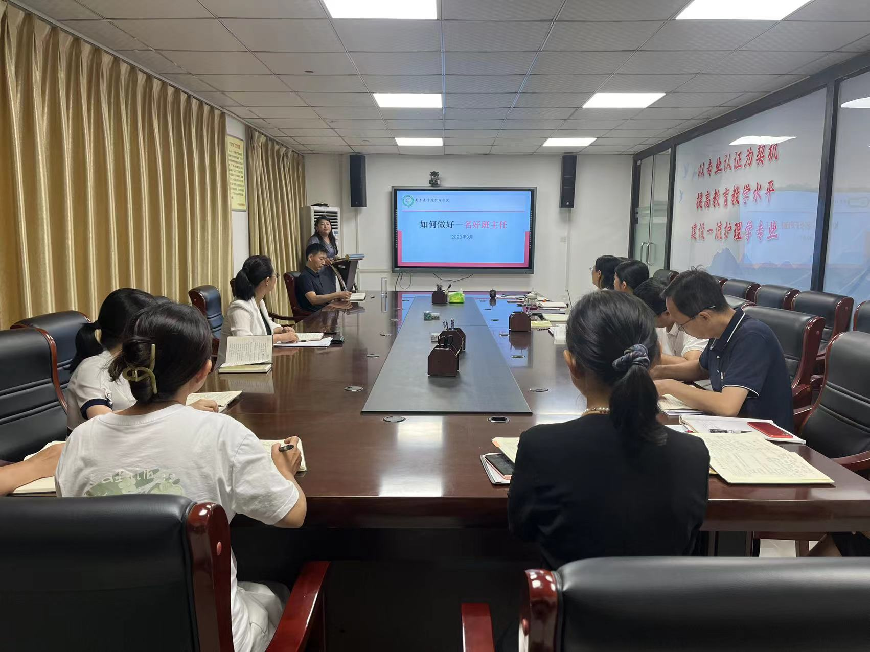 孙翔书记从班主任应具备的职业素养出发,他指出,班主任既要帮助学生打下坚实的学习基础,也要厚植家国情怀、涵养进取品格。他通过自己亲身经历的一个个案例,向大家阐释作为班主任关心关爱学生的重要性。要不忘立德树人初心,牢记为党育人、为国育才使命,培养好担当民族复兴大任的时代新人。切实成为学生成长成才的陪伴者和引领人。