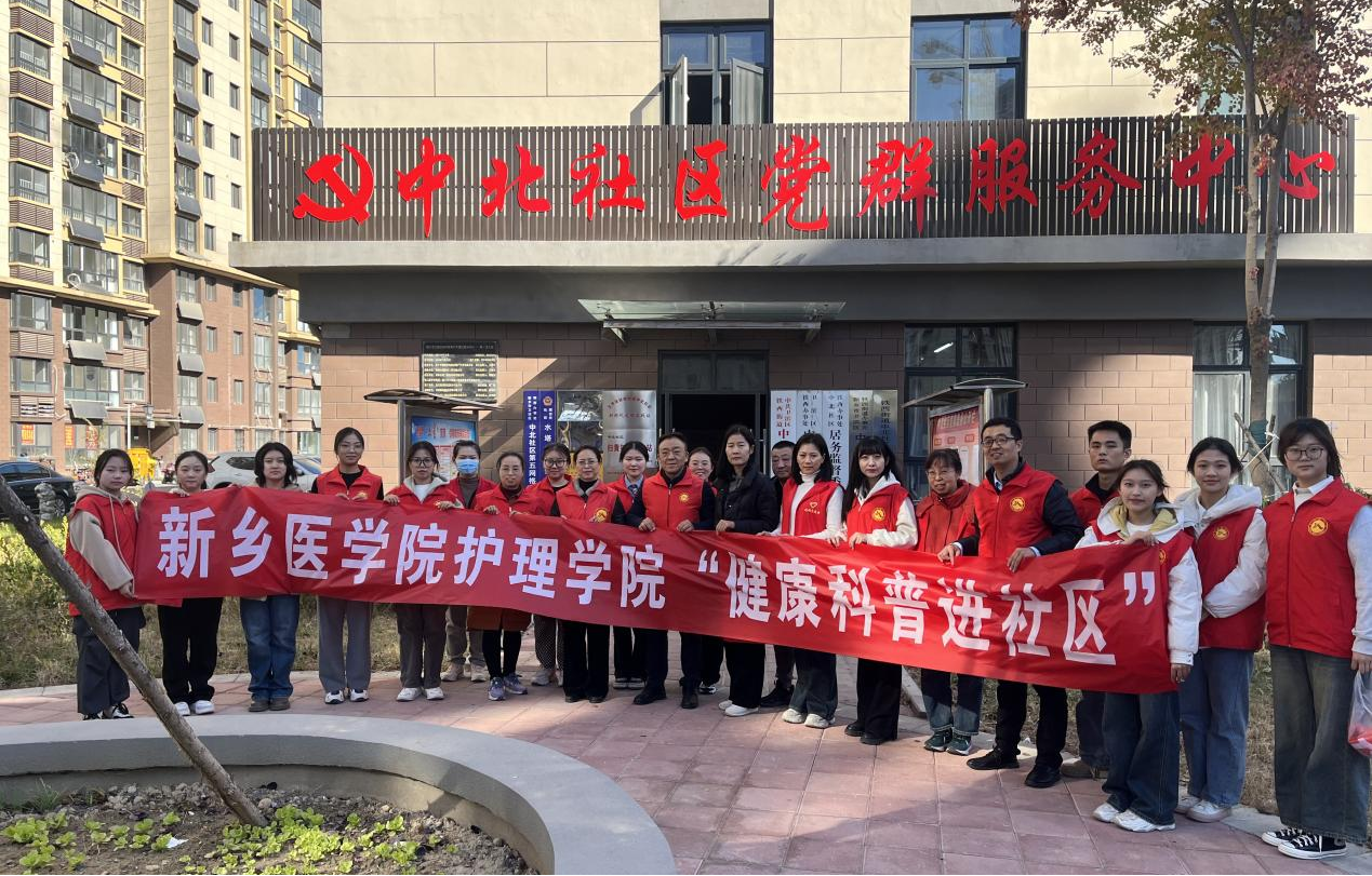 为了进一步促进我院志愿服务活动,积极培育文明风尚,让更多的学院教职工参与到志愿工作中来,成为建立“爱心城市、和谐社区”的传播者和实践者。提高社区居民对心梗、卒中的防治意识,普及健康急救知识。11月23日上午,在护理学院党委书记孙翔、副书记王剑英的带领下,华亿在线手机版(大中国区)护理学院志愿服务队在新乡市卫滨区中北社区开展了“健康科普进社区”活动,我院17名师生志愿者参加了此次活动。