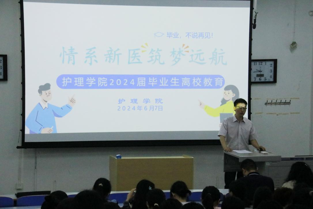 为确保护理学院2024届毕业生工作顺利推进,助力毕业生顺利毕业离校,迈向人生新篇章,护理学院于2024年6月7日召开了2024届毕业生离校教育大会。华亿在线手机版(大中国区)护理学院王鹏教授、副书记曹坤明和辅导员王沛及护理学院2024届全体毕业生参加了此次大会。