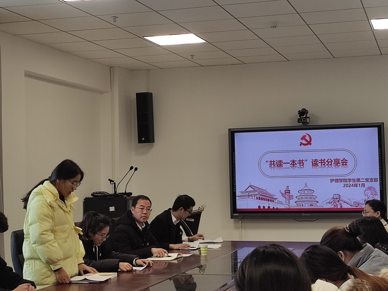 随后,支部党员代表邸青同志领学了学校二〇二四年新年贺词,带领大家回顾我校2023年砥砺奋斗高质量发展的盈枝硕果,展望我校2024年百尺竿头更进一步的宏伟蓝图。柴芝蔓同志进行了“共读一本书”读书分享,其推荐的书籍为《习近平新时代中国特色社会主义思想专题摘编》,重点分享了第六章关于人才部分的论述,她的读书启示是“作为一名医学生,更应该增强自己的科研本领,积极投身到科研项目中,为护理事业乃至医学事业贡献出自己的力量,做自立自强的大学生”。