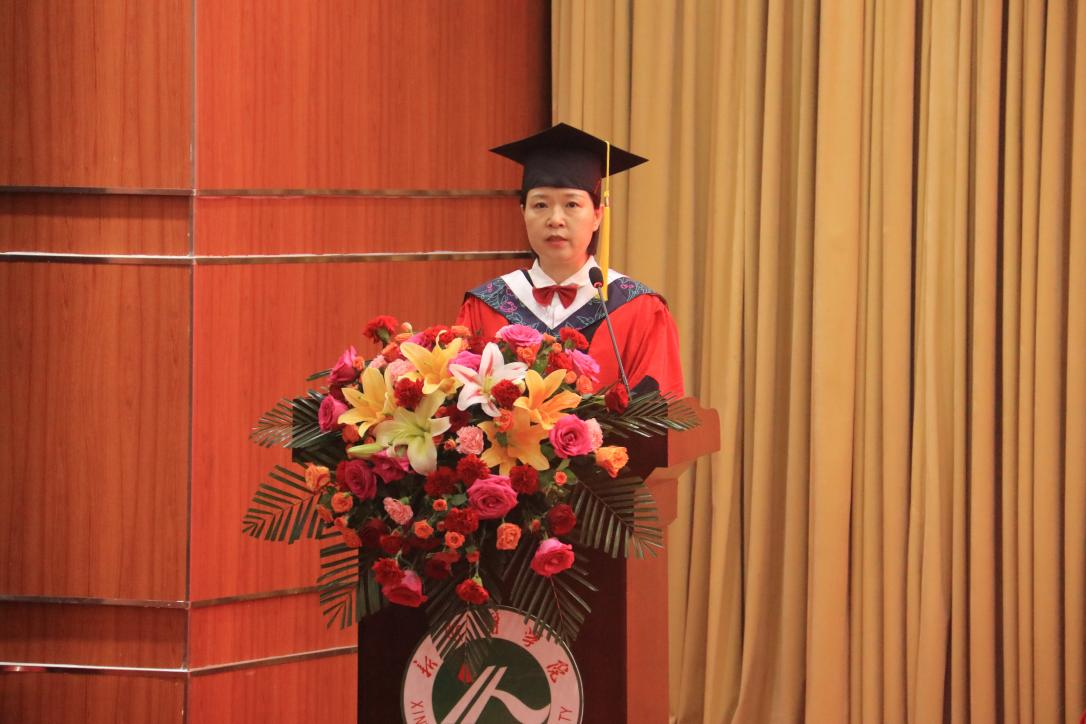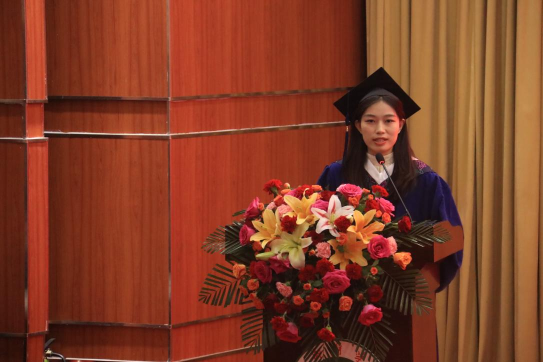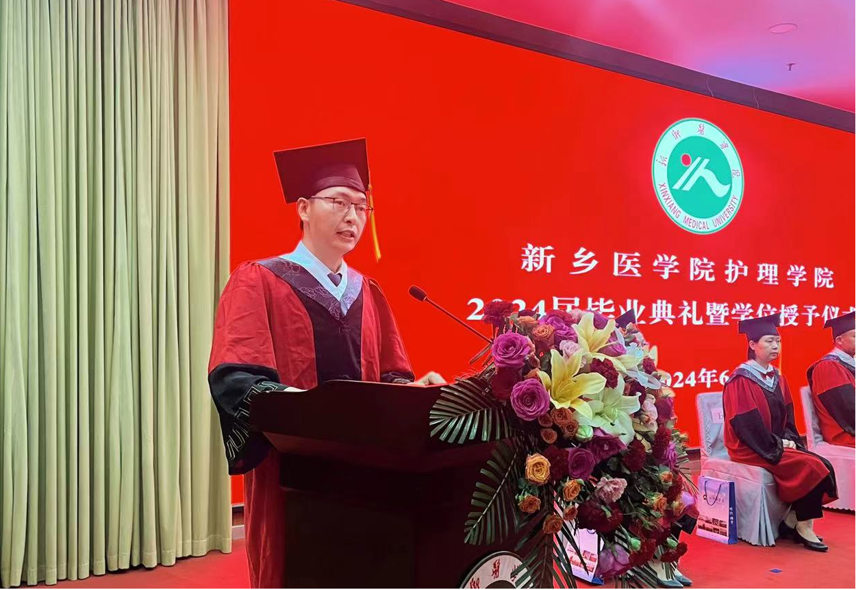 随后,护理学院王鹏教授在致辞中向经过努力学习圆满完成学业的同学们表示热烈祝贺,向辛勤培育同学们健康成长的老师们、家长们致以敬意。并向即将奔向远方的全体硕士毕业生和本科毕业生提出三点叮嘱:一要有终身学习的态度;二要有社会责任意识;三要懂得感恩与回馈。