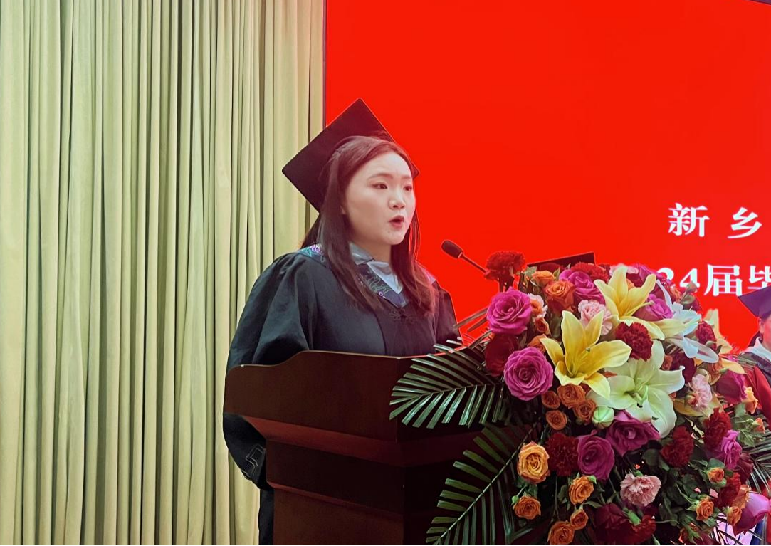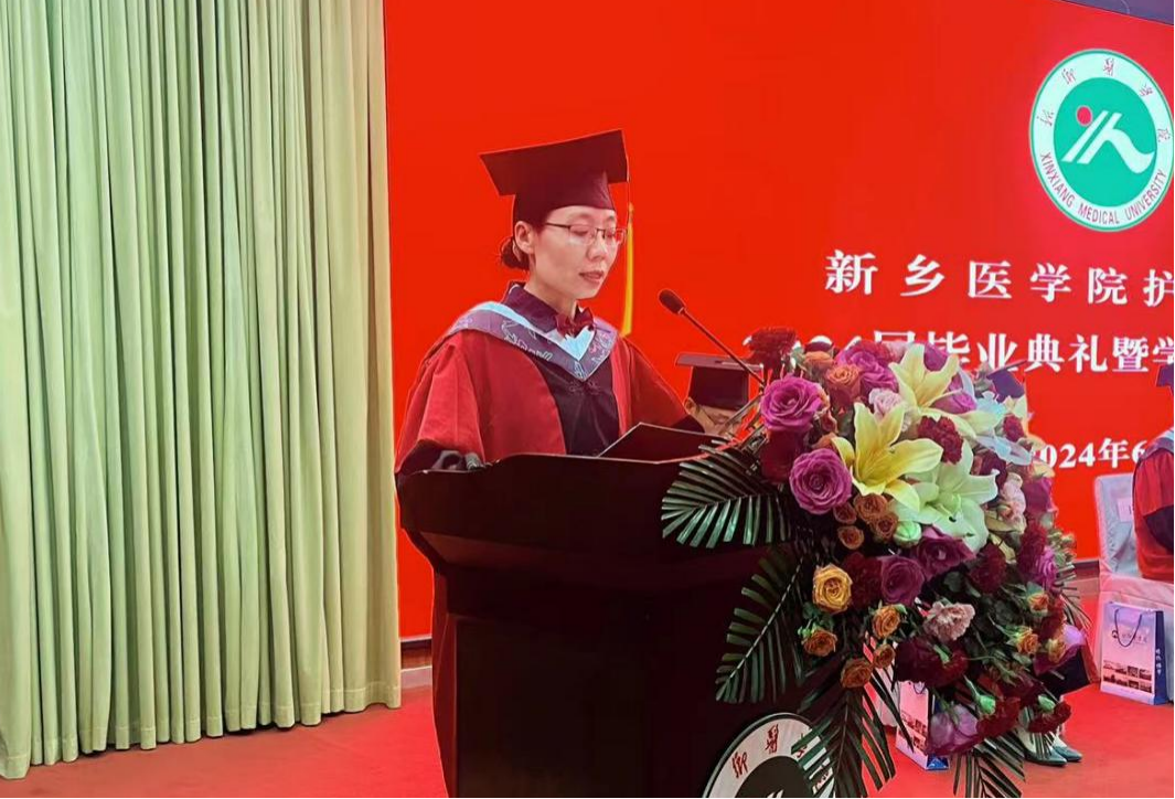 毕业硕士研究生代表王俊同学,毕业本科生代表周婕同学分别在毕业典礼上发言。她们表达了对母校的感激之情、对老师的感谢、对未来的展望以及对护理学院未来发展的祝福,让同学们深深感受到了2024届全体毕业生的责任与担当。优秀本科毕业生杨淼的父亲杨伟东在发言中用朴素的语言表达了对2024届全体毕业生的无限的期望和深切的祝福,祝愿孩子们在未来的生活和工作中一帆风顺,前程似锦。教师代表张金华在发言中祝愿毕业学子拥有美好未来,希望毕业的同学们坚守正确的思想观念,传承南丁格尔精神,勇做时代新人。