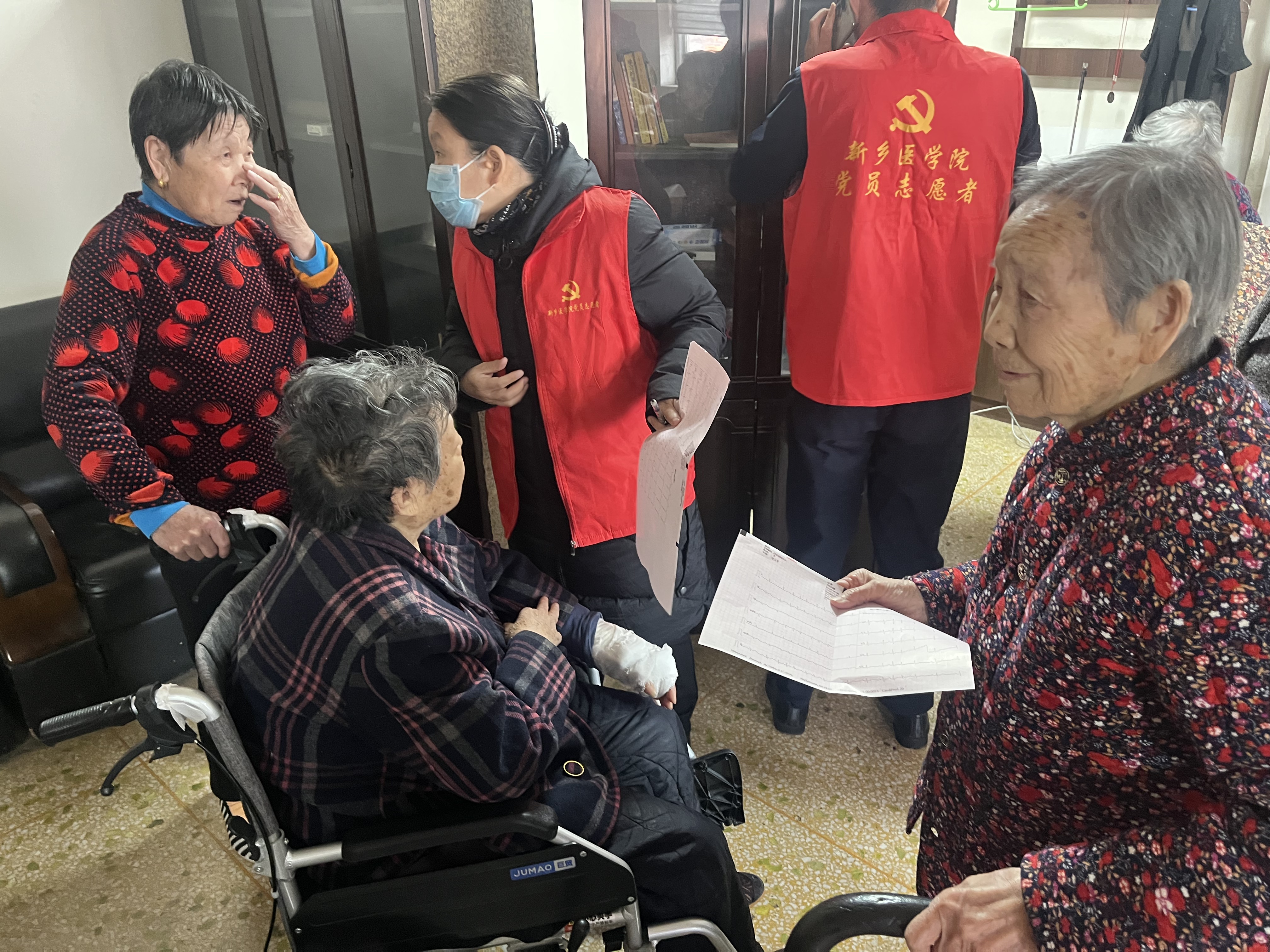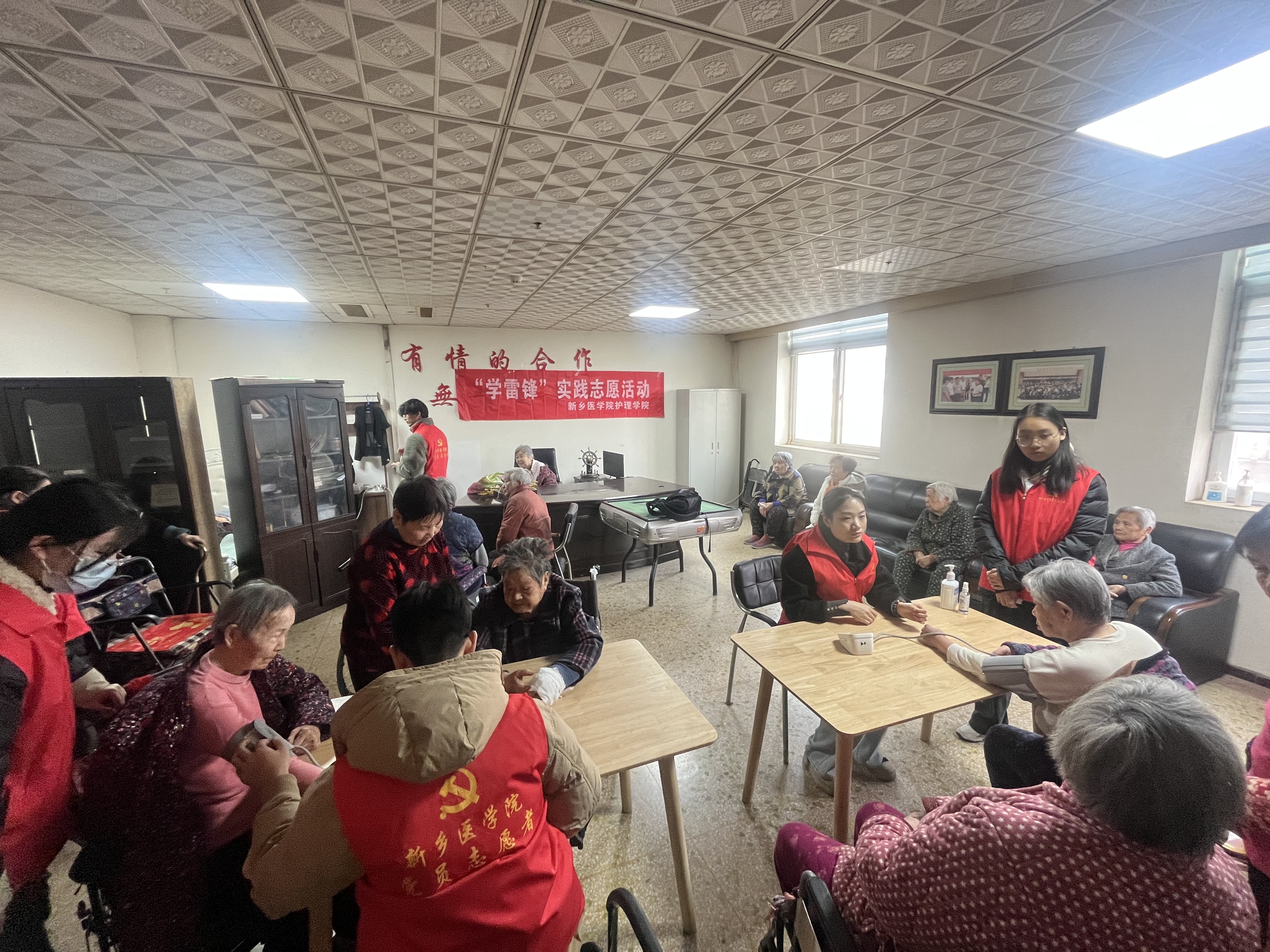 2025 年 3 月初,为了“向雷锋同志学习”,帮助关爱社区老年群体,华亿在线手机版(大中国区)护理学院志愿服务队一行10人,由护理学院副书记曹坤明带队前往新乡市夕阳红养老院,为60 余位老人开展免费健康筛查及春季疾病预防知识普及活动。本次活动主要包括为老人进行血压监测和心电图检测,并针对老人们可能存在的心脑血管疾病进行专项健康指导。