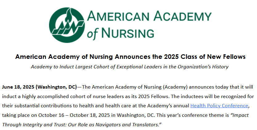 美国护理科学院始建于1973年,致力于通过护理领导、创新和科学来改善健康和实现健康公平。FAAN的遴选通过激烈的竞争和严格的选拔,旨在表彰在护理教育、管理、实践、研究和政策等领域做出卓越贡献的专业人士,是全球护理界最负盛名的荣誉之一。本年度中国内地共有18名护理专家入选。
