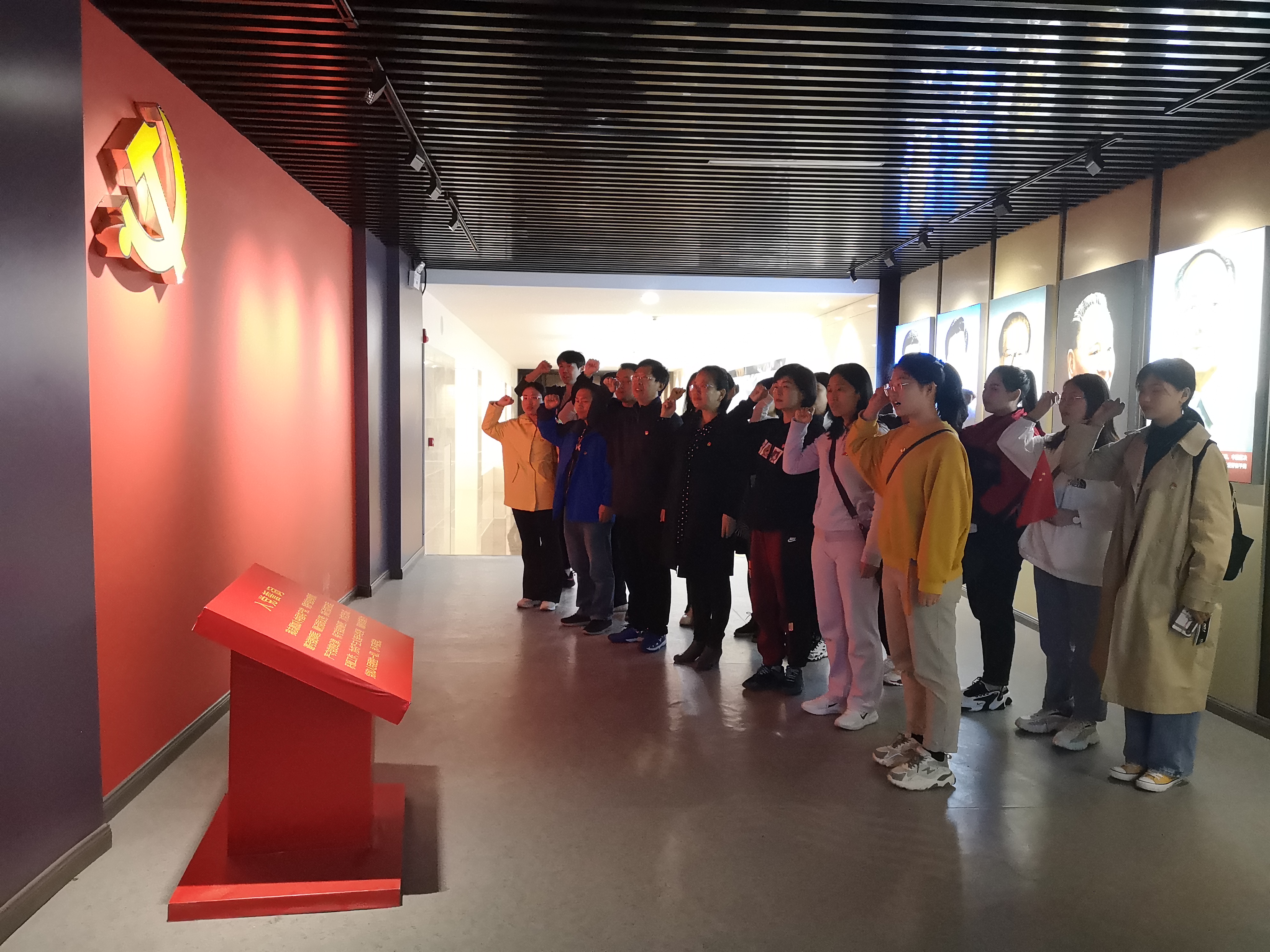 参观完毕,各支部17名师生党员代表站在鲜红的党旗面前,举起右拳,共同重温了入党誓词,表达了学党史、知党情、感党恩、永远跟党走的坚定信心。全体教师更加坚定了立德树人初心和为党育人、为国育才、勇挑重担、砥砺前行的信心和决心。