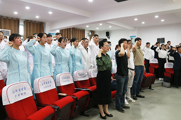 为深入推进党史学习教育,创新大学生思政教育形式,进一步抓好学生党建工作,5月27日晚,护理学院在西校区护理学院实验中心举行党委学生新发展党员入党宣誓仪式暨“护·党同新”主题教育活动。学院党政相关负责人,学生第二、第三党支部委员出席,新老学生党员代表80余人参加本次活动。