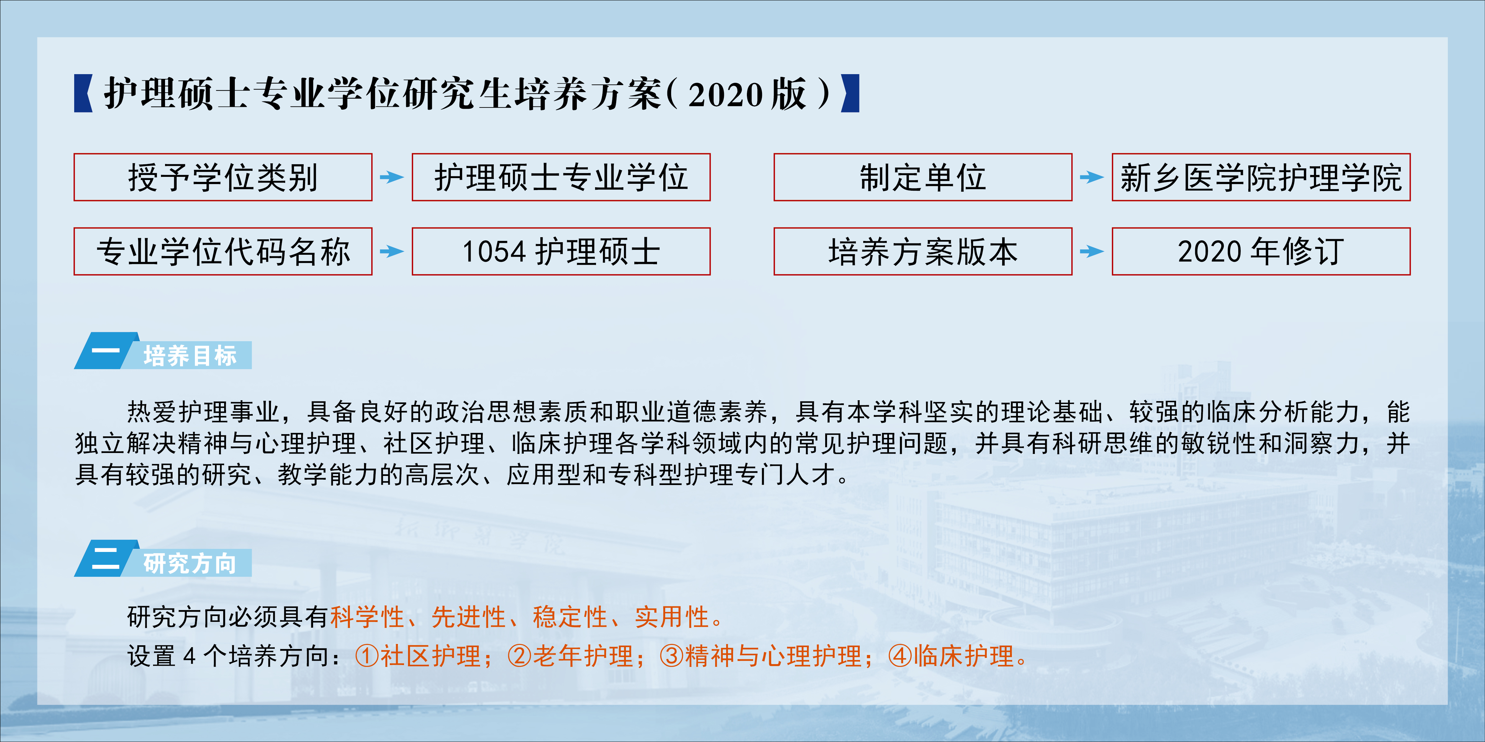 护理硕士专业学位研究生培养方案(2020版)(点击查看详情)