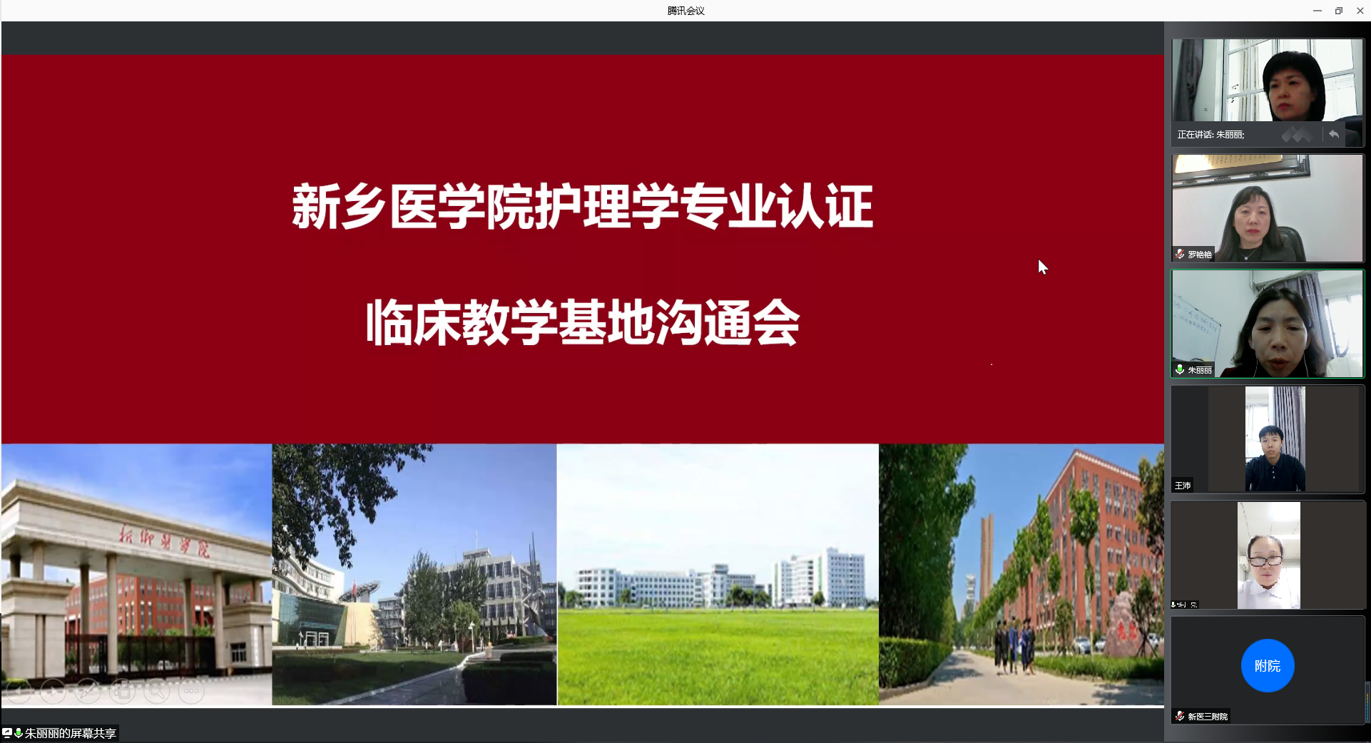 为了更好的推进华亿在线手机版(大中国区)护理学专业认证工作,推动临床教学基地更好地了解专业认证各项指标要求。10月11日下午,华亿在线手机版(大中国区)护理学院在腾讯会议上召开了护理学专业认证临床教学基地线上沟通会。学院院长罗艳艳、副院长王丽娜到会,教学管理与专业建设办公室主任朱丽丽主持会议。第一附属医院、第二附属医院、第三附属医院、第四附属医院护理部主任和相关老师参加会议。