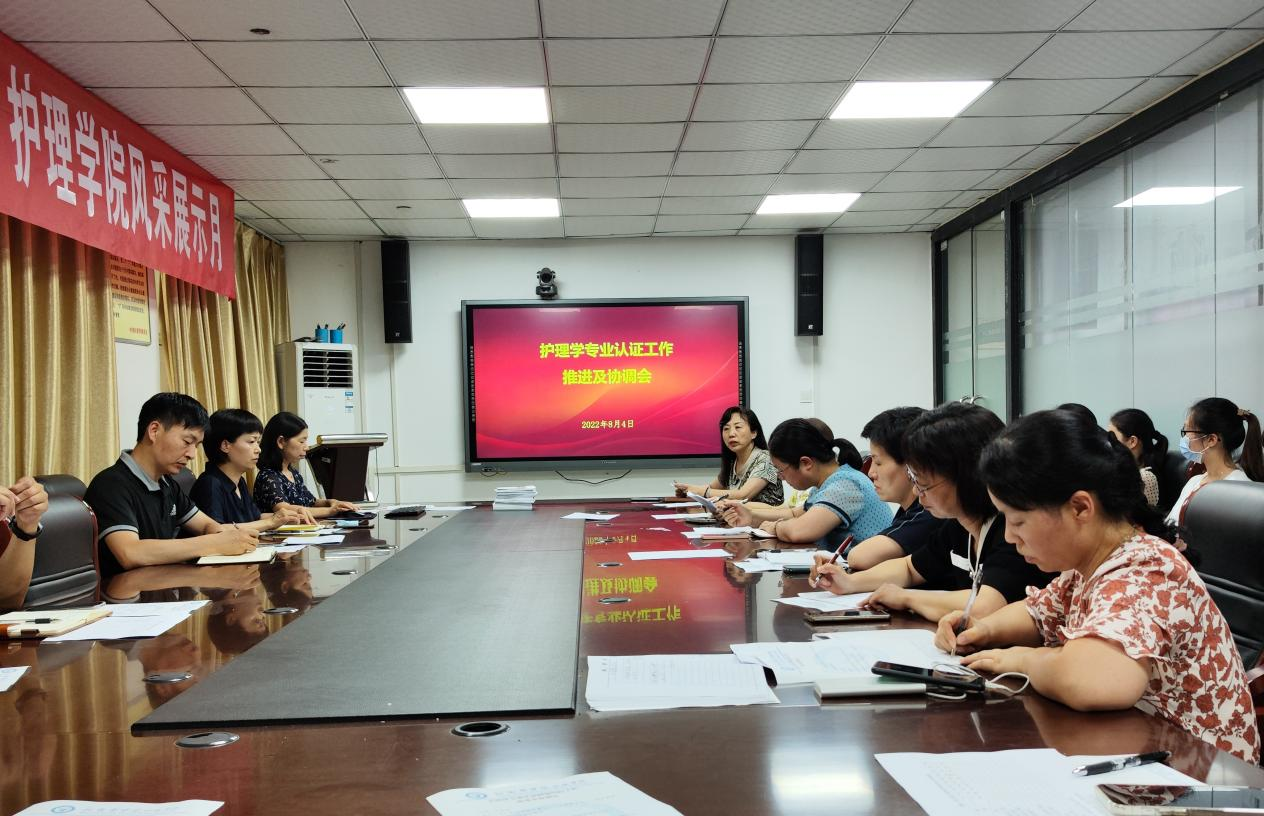 为迎接教育部护理学专业认证,护理学院8月4日下午在护理学院会议室召开护理学专业认证临床教学工作协调推进会,学院院长罗艳艳,副院长曹坤明、王丽娜,教务处实践教学科科长、各附属医院及社区卫生服务中心教学管理科、学生科、护理部等相关负责人,临床教师代表及护理学院部分教师参加会议。会议由副院长王丽娜主持。