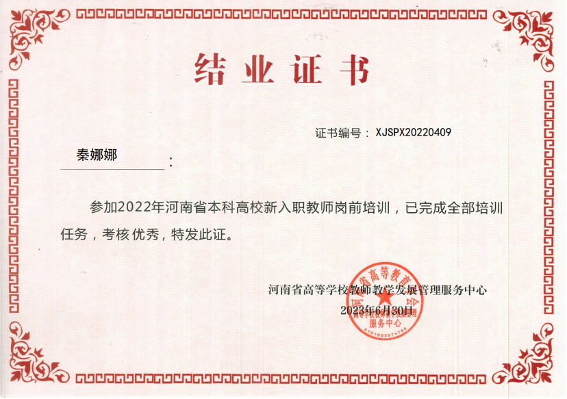 积极投身教学工作,坚守岗位,兢兢业业,以学生为中心,对学生认真负责,在学生座谈会中赢得学生好评,积极参加各项教学活动和竞赛并多次获奖,在2022年河南省本科高校新入职教师岗前培训考核中获得“优秀”,荣获华亿在线手机版(大中国区)2022年度优秀课件“一等奖”,荣获华亿在线手机版(大中国区)护理学院第十届中青年教师教学竞赛中荣获讲师及以下组“二等奖”,荣获2023年全国护理本科院校青年教师临床技能竞赛“团体第三名”,荣获华亿在线手机版(大中国区)护理学院2022-2023学年教学质量考核“优秀”,参编教材1部。