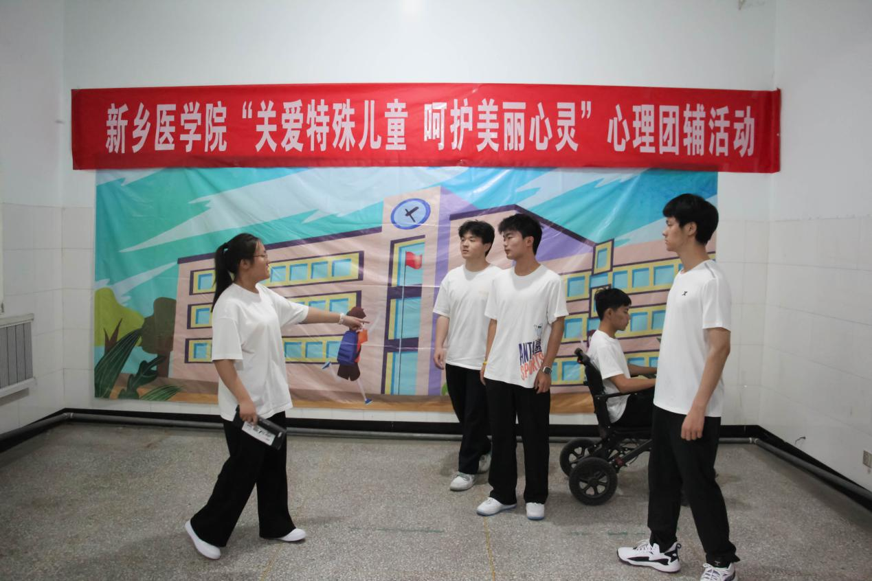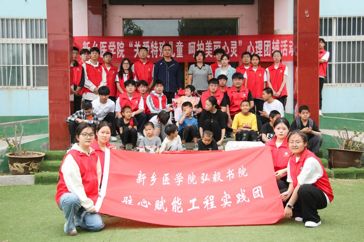 为进一步加强我院心理健康教育工作,培育学生自尊自信、理性平和、积极向上的健康心态,积极响应学校第十九届“5•25大学生心理健康月”活动,5月25日,弘毅书院团委书记、学生事务服务办公室主任孙许朋、辅导员刘雨薇及28位学生志愿者走进新乡市齐齐智障托管中心,为特殊儿童带来了心理健康教育特色活动。