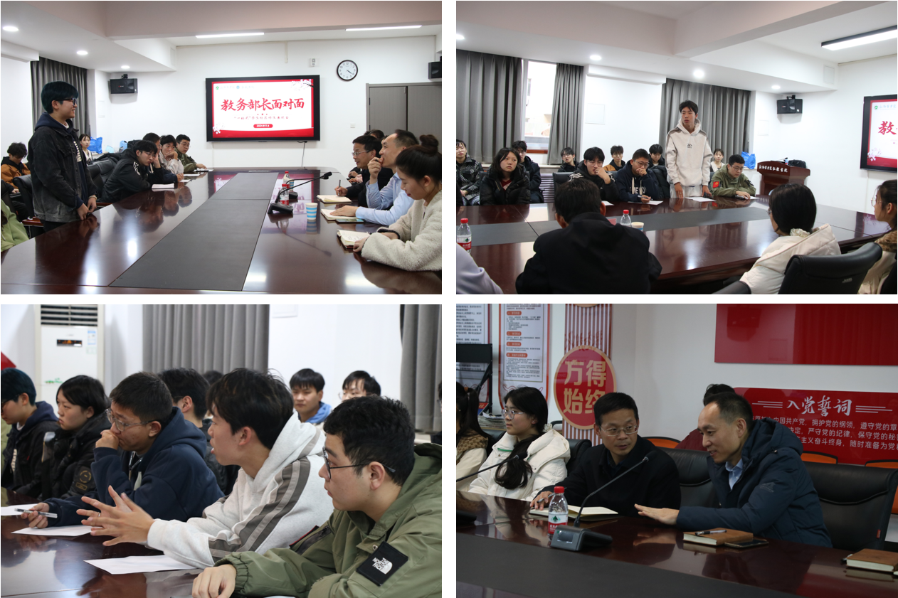 为深入学习贯彻习近平新时代中国特色社会主义思想,落实立德树人根本任务,深化“三全育人”理念,全面推进“一站式”学生社区综合管理模式建设工作,积极畅通师生沟通渠道,倾听学生心声,筑牢学业根基,进一步加强学风建设,共促学业提升。11月28日,教务部主任、书院导师井长勤教授与我院师生相聚党建活动室开展教务部长面对面:“一站式”学生社区师生座谈会,书院副院长雒国胜出席并主持会议,辅导员赵茜阳与各专业学生代表参与此次活动。