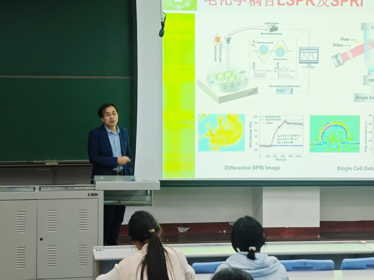 刘清君教授从中医“望闻问切”的传统智慧出发,系统梳理了现代医疗器械从有源到无源的发展历程。他指出,生物医学工程作为工程技术与生命科学深度融合的交叉学科,正以前所未有的活力推动医疗健康领域的创新发展。刘教授深入解读了生物医学传感与检测领域的发展机遇以及未来挑战,对近年来发展迅速的电化学生物化学传感检测等生物医学传感方法在可穿戴技术上的具体实现进行了详细介绍,同时也为新生们介绍了走科研道路需要的基本素质、基本能力、基本方法等。刘教授步步引申,由学术研究畅谈到学业规划,他勉励新生们要积极参与科研项目,学会独立思考,开拓思路,勇于探索,敢于创新,培养批判性思维和创新能力,不断攀登科研高峰,为国家医疗卫生事业做出更大的贡献。