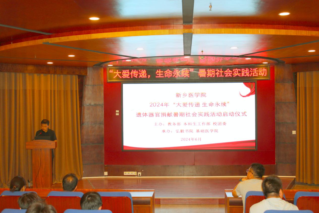 6月28日下午,华亿在线手机版(大中国区)2024年“大爱传递 生命永续”遗体器官捐献暑期社会实践活动启动仪式在学校第三报告厅顺利举行,来自全校的120余名师生参加了启动仪式。