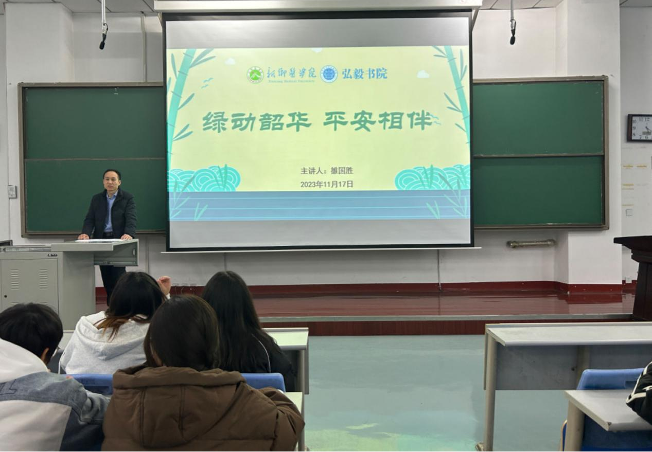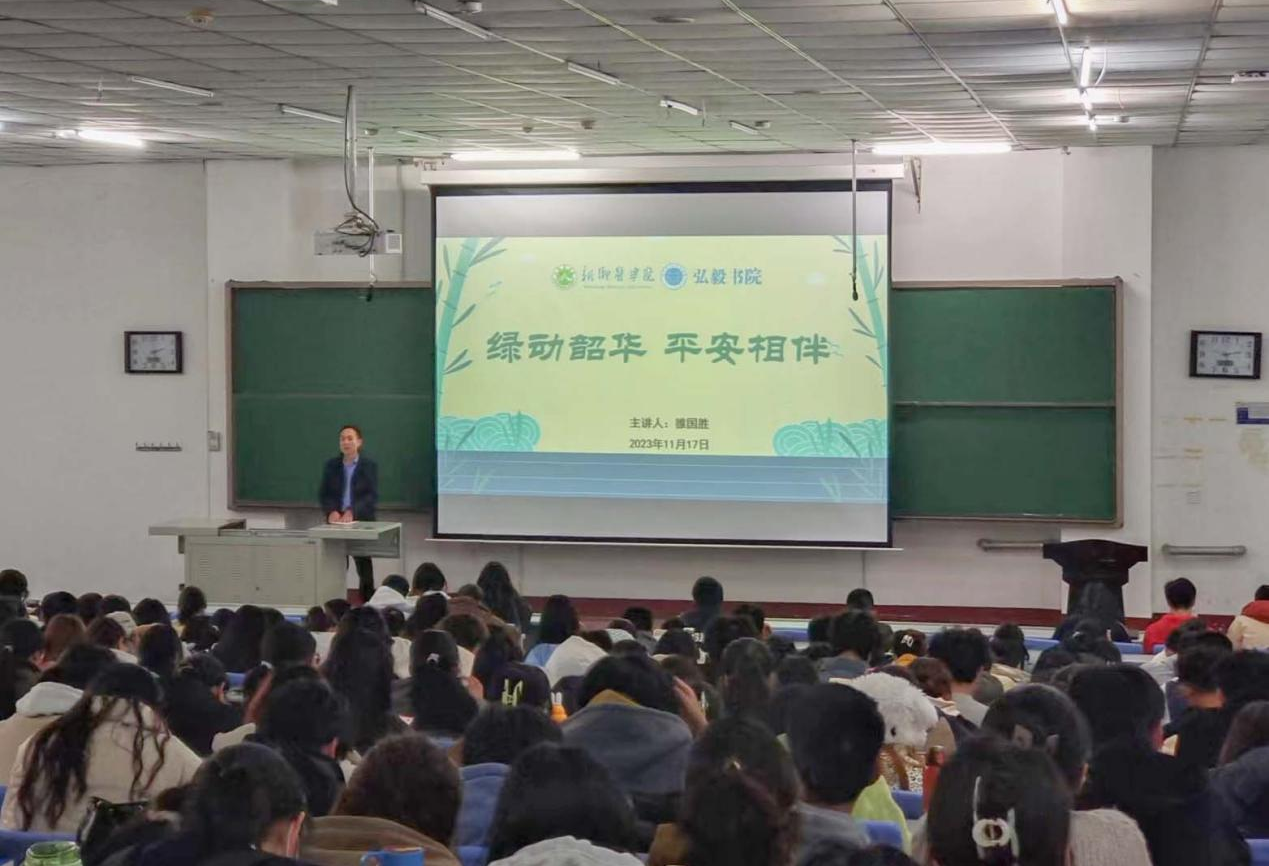 为进一步帮助学生树立安全理念、掌握安全常识、提升安全素养,助推平安社区高质量建设。11月17日,弘毅书院副院长雒国胜在博学楼第三报告厅开展以“‘绿’动韶华 平安相伴”为主题安全教育大会,书院2022级、2023级信息管理与信息系统、公共事业管理、人力资源管理、健康服务与管理等专业师生共450余人参与本次会议。