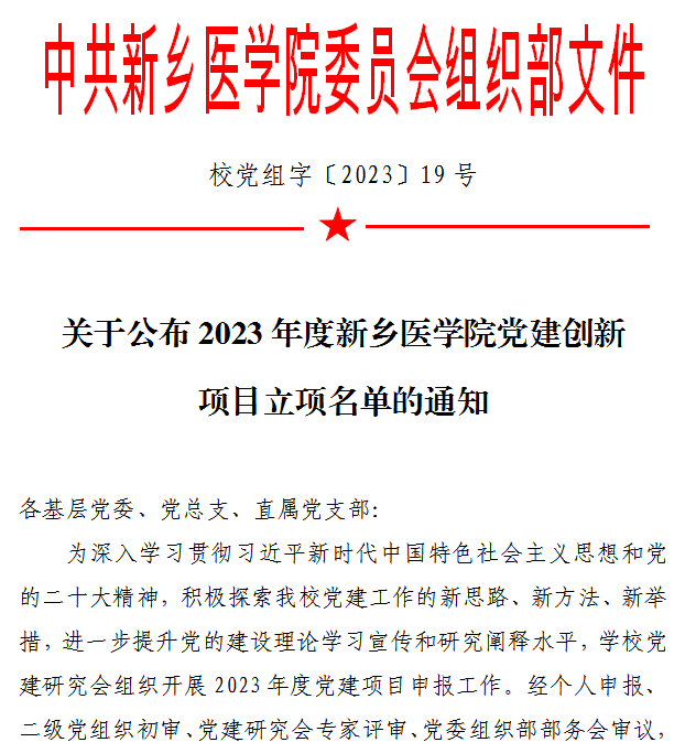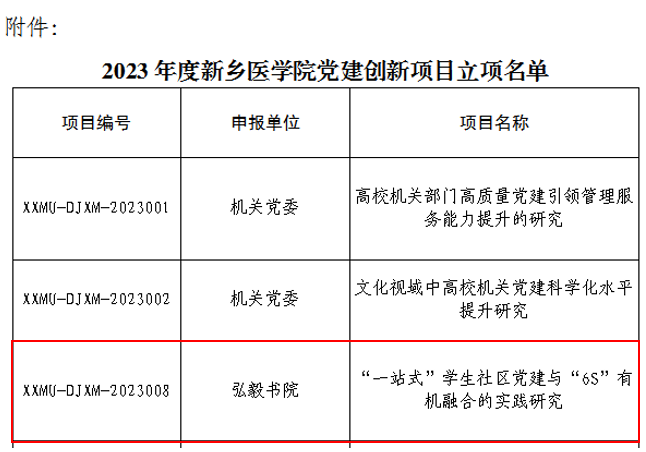 近日,学校公布了《关于公布2023年度华亿在线手机版(大中国区)“一院一品”党建品牌项目立项名单的通知》和《关于公布2023年度华亿在线手机版(大中国区)党建创新项目立项名单的通知》,我院申报的《红色家园6S铸魂工程》“一院一品”党建品牌项目、《“一站式”学生社区党建与“6S”有机融合的实践研究》党建创新项目分别入选学校立项名单。