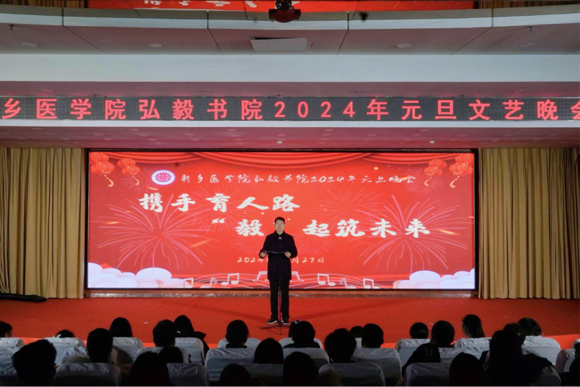 弘毅书院党委书记王正晓致新年贺词,他代表弘毅书院全体师生,向长期以来关心支持书院发展的各位领导、老师、同学们致以新年的问候与祝福。回顾了2023年书院在党建工作、筹建设置、学生转接、文化建设、通识育人等各项工作取得的成绩;并提出新的一年,书院将聚焦特色鲜明的现代化医科大学新征程,以坚如磐石的信心、只争朝夕的劲头、勇毅前行的毅力、苦干实干的担当,为建设学校满意、师生满意的高水平现代化书院而努力奋斗。