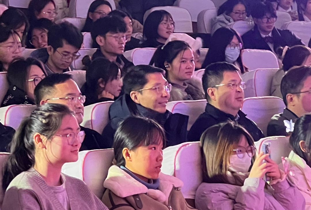 正声雅音辞旧岁,乐来悦好谱新章。12月27日晚,弘毅书院在第一报告厅顺利举办“携手育人路,‘毅’起筑未来”2024年元旦晚会。校党委副书记、弘毅书院名誉院长朱武凌,党委本科生工作部部长、本科生学院院长葛治国,校团委书记李超,心理学院党总支副书记陈宏及弘毅书院全体领导班子参加晚会。现场近四百名师生共同观看节目,晚会现场热闹非凡,精彩纷呈。