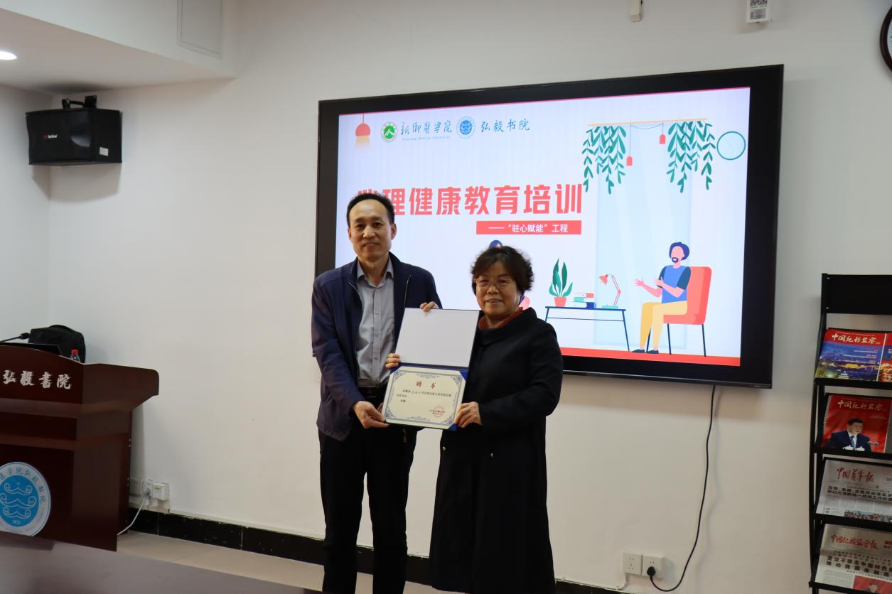参加培训的教师们纷纷表示,此次培训让他们受益匪浅。他们不仅掌握了更多关于学生心理问题的知识和应对技能,也深刻体会到了关爱学生心理健康的重要性。他们将把所学的知识和技能应用到日常教学中,更好地帮助学生解决心理问题,促进学生的全面发展。弘毅书院副院长雒国胜表示,书院将继续加强与心理学界的合作与交流,为教师提供更多专业的培训和支持服务,以进一步提升书院的教育教学质量和学生的心理健康水平。会后,我院为张改叶教授颁发了聘书。
