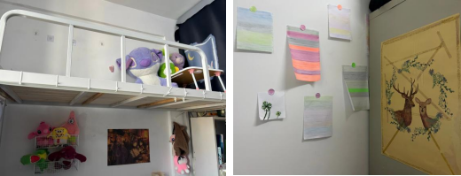 我们的宿舍墙上挂满了大家亲手制作的装饰画,每一幅都充满了我们的心意,让整个空间都洋溢着温馨的氛围。宿舍里的小桌子上总是摆放着我们共享的小零食和水果,那份默契和关心让这里充满了家的温暖。每当晚上,我们围坐在宿舍的床边,分享彼此的故事和心情,那柔和的灯光映照着我们的脸庞,营造出一种宁静而温馨的氛围。我们的宿舍虽然不大,但每一寸空间都被我们精心布置,从床单的颜色到墙角的装饰,都透露着我们对这个家的热爱和呵护。